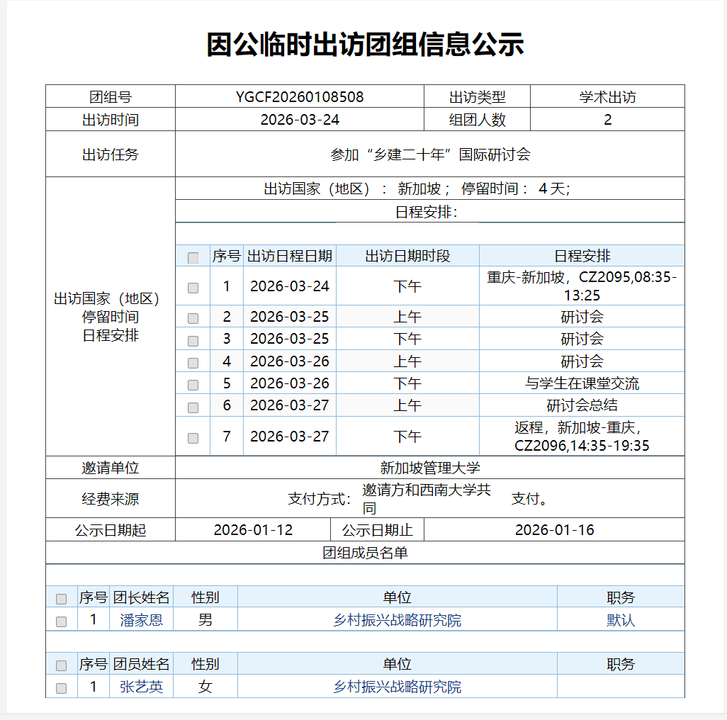 因公临时出访人员信息公示