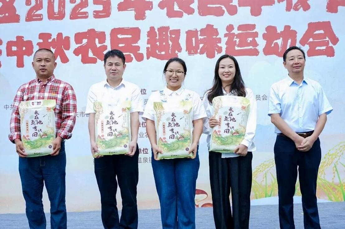 ▲“田主”代表领到新米。(资料图片)受访者供图